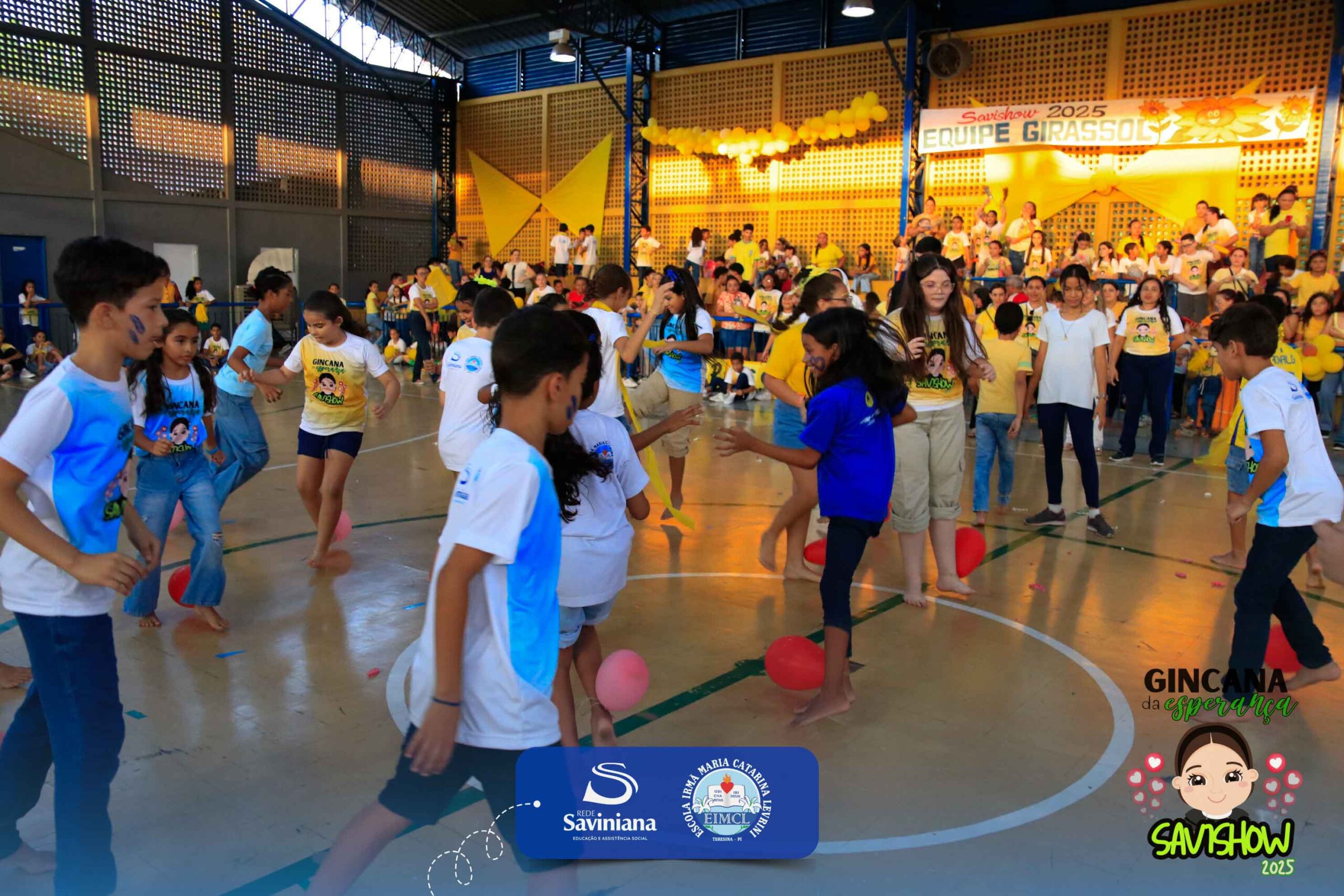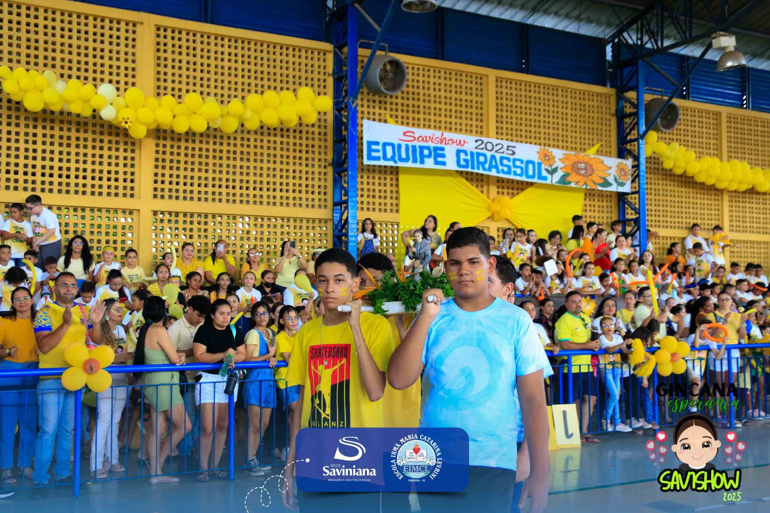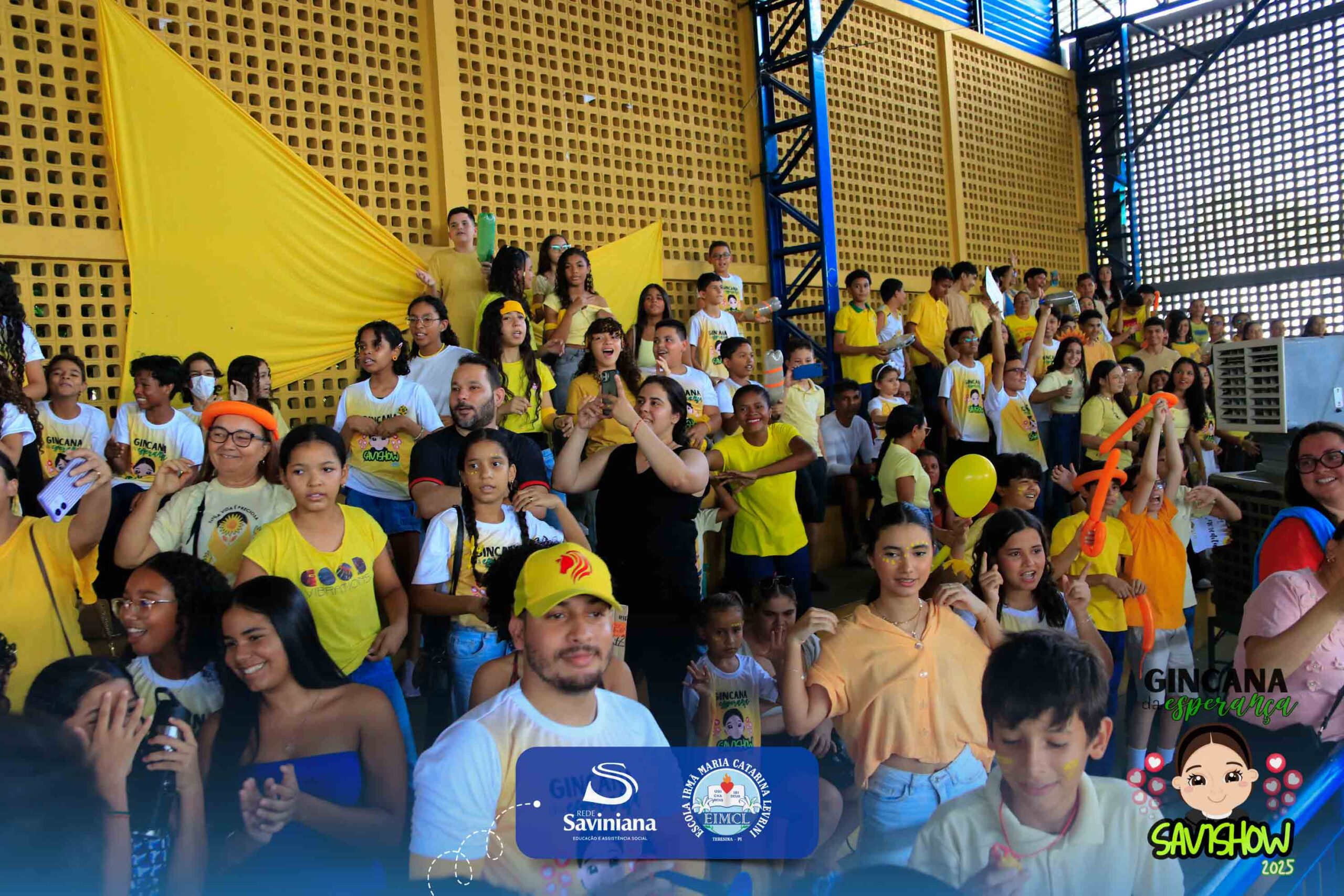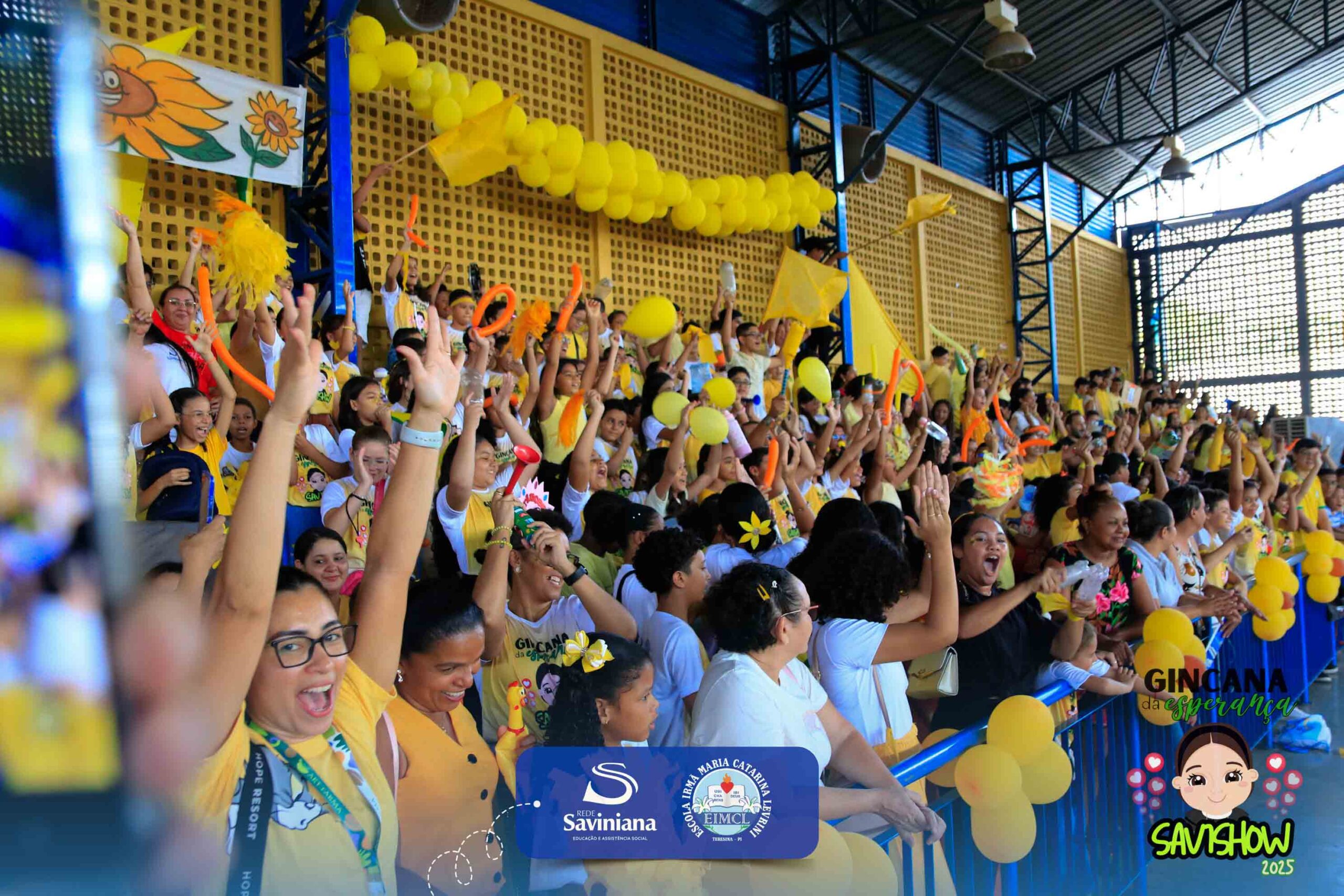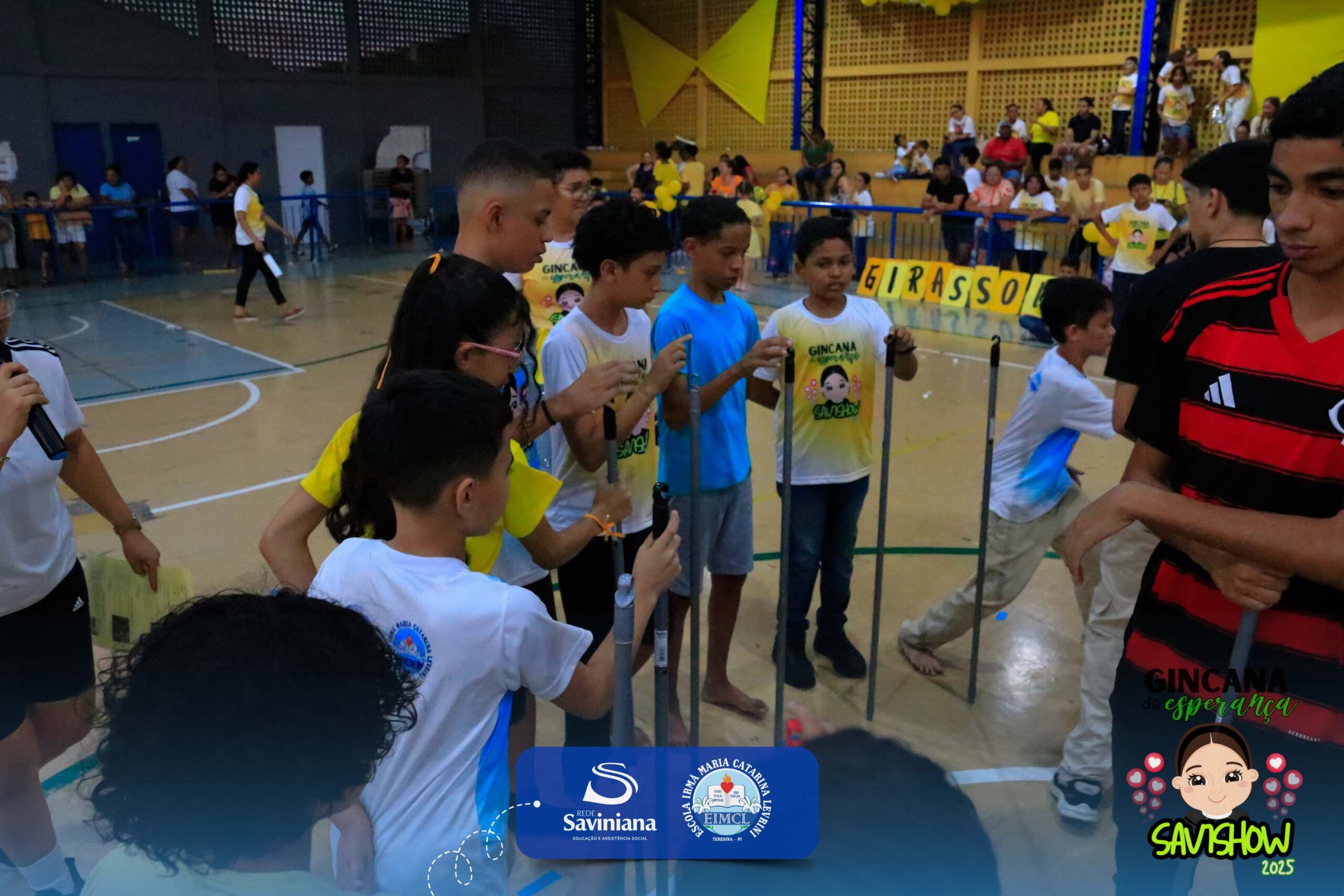 A Gincana da Esperança mobilizou toda a comunidade escolar com arrecadação de alimentos, provas, brincadeiras, quiz e muita animação dos alunos do 1º ao 9º ano. 🙌 Divididos entre a Equipe Girassol e a Equipe Espírito de Família, nossos Saviestudantes deram um show de talento, cooperação e amizade no Ginásio Jacira Sousa.