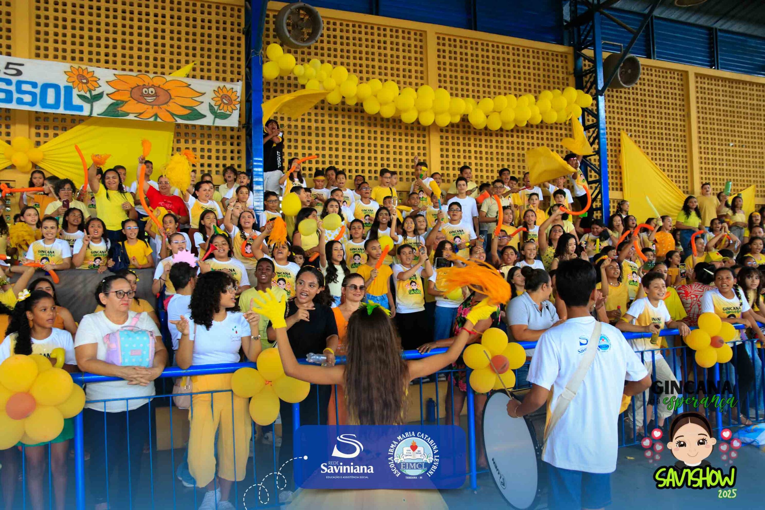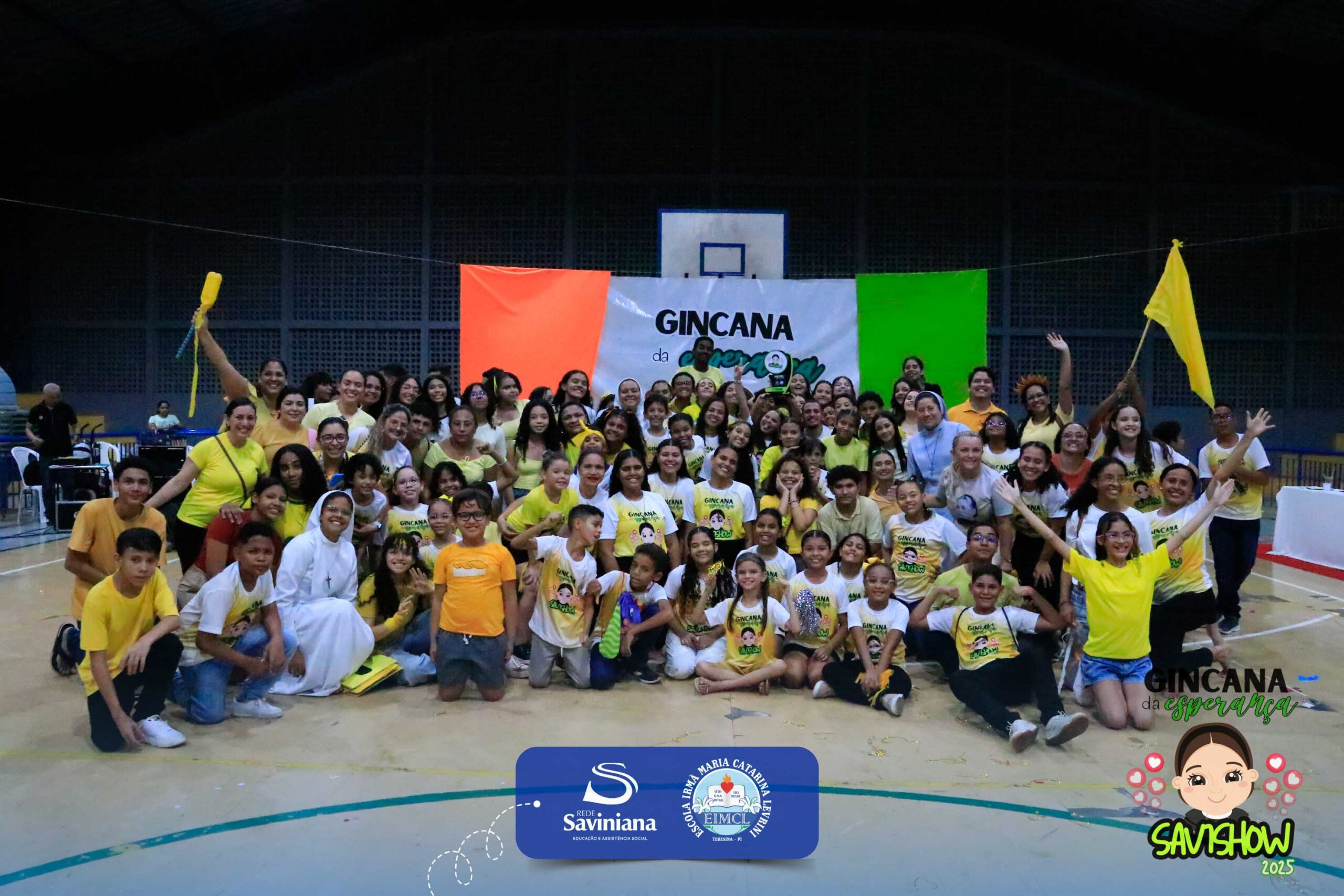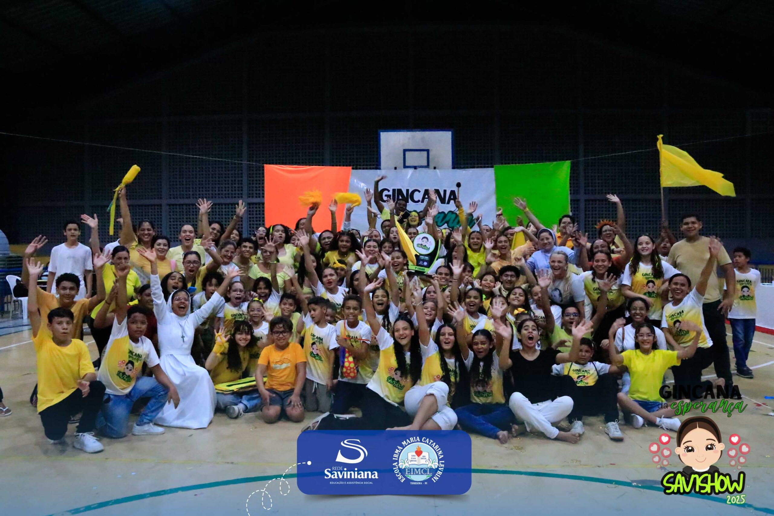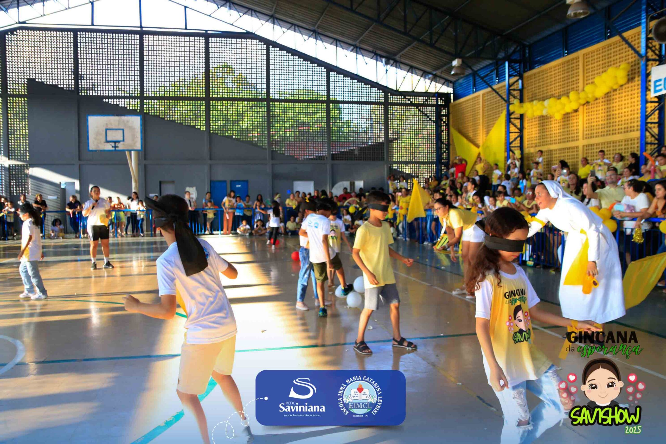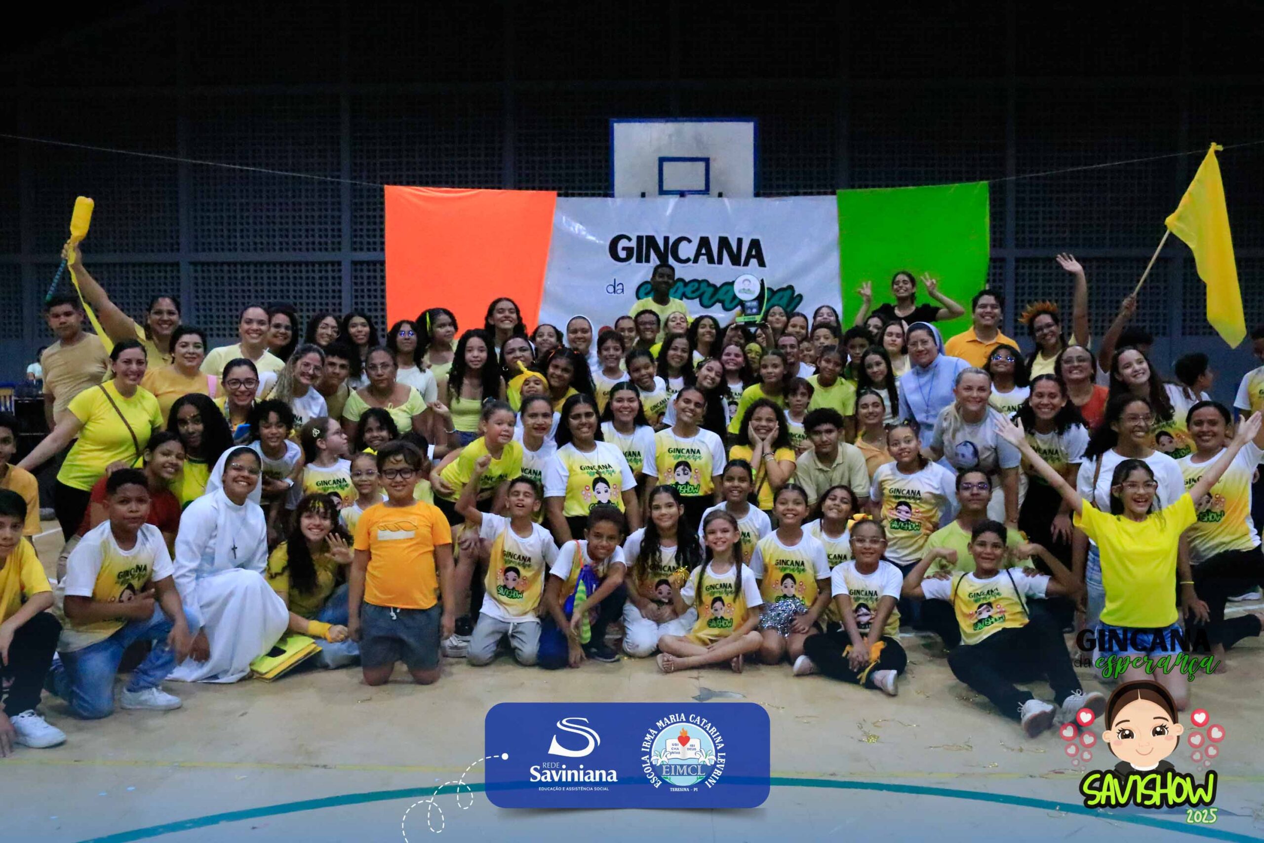 A Gincana da Esperança mobilizou toda a comunidade escolar com arrecadação de alimentos, provas, brincadeiras, quiz e muita animação dos alunos do 1º ao 9º ano. 🙌 Divididos entre a Equipe Girassol e a Equipe Espírito de Família, nossos Saviestudantes deram um show de talento, cooperação e amizade no Ginásio Jacira Sousa.