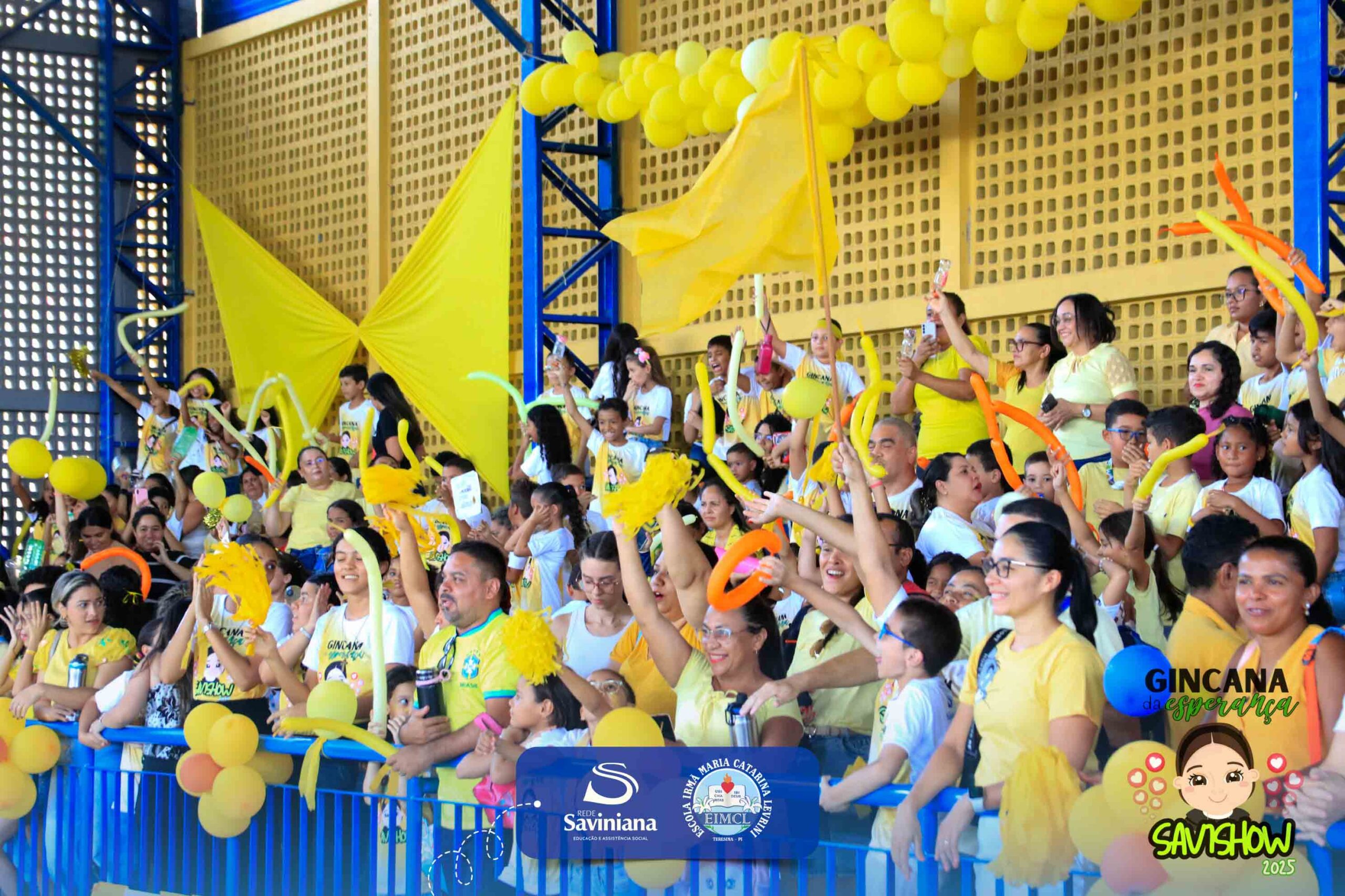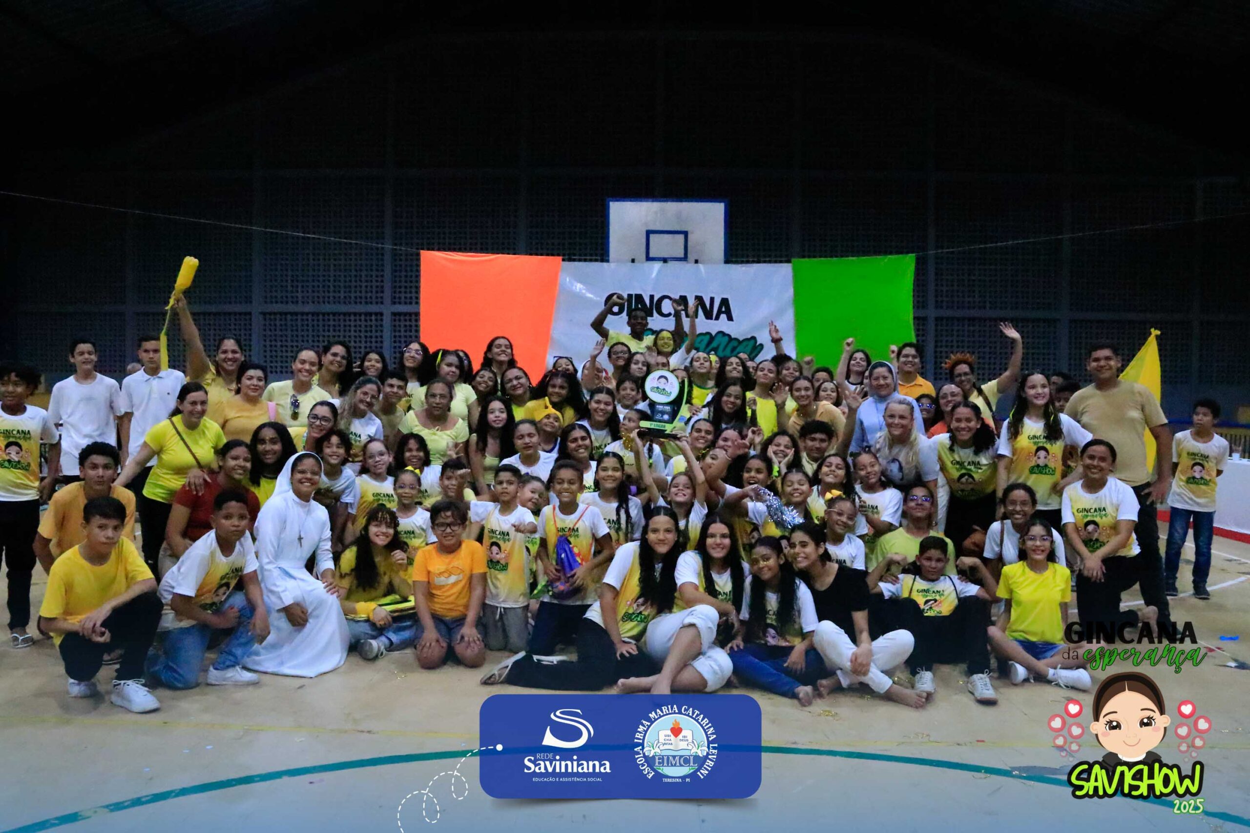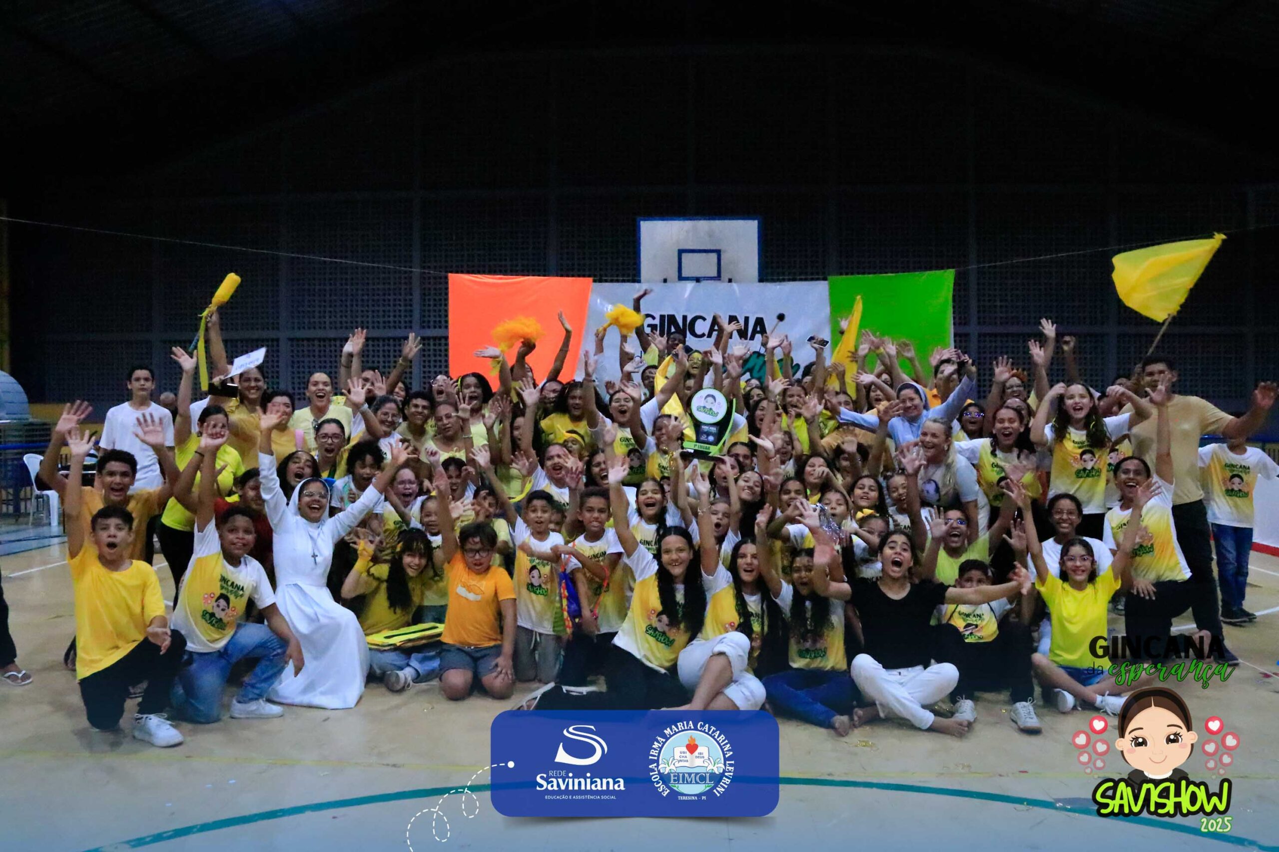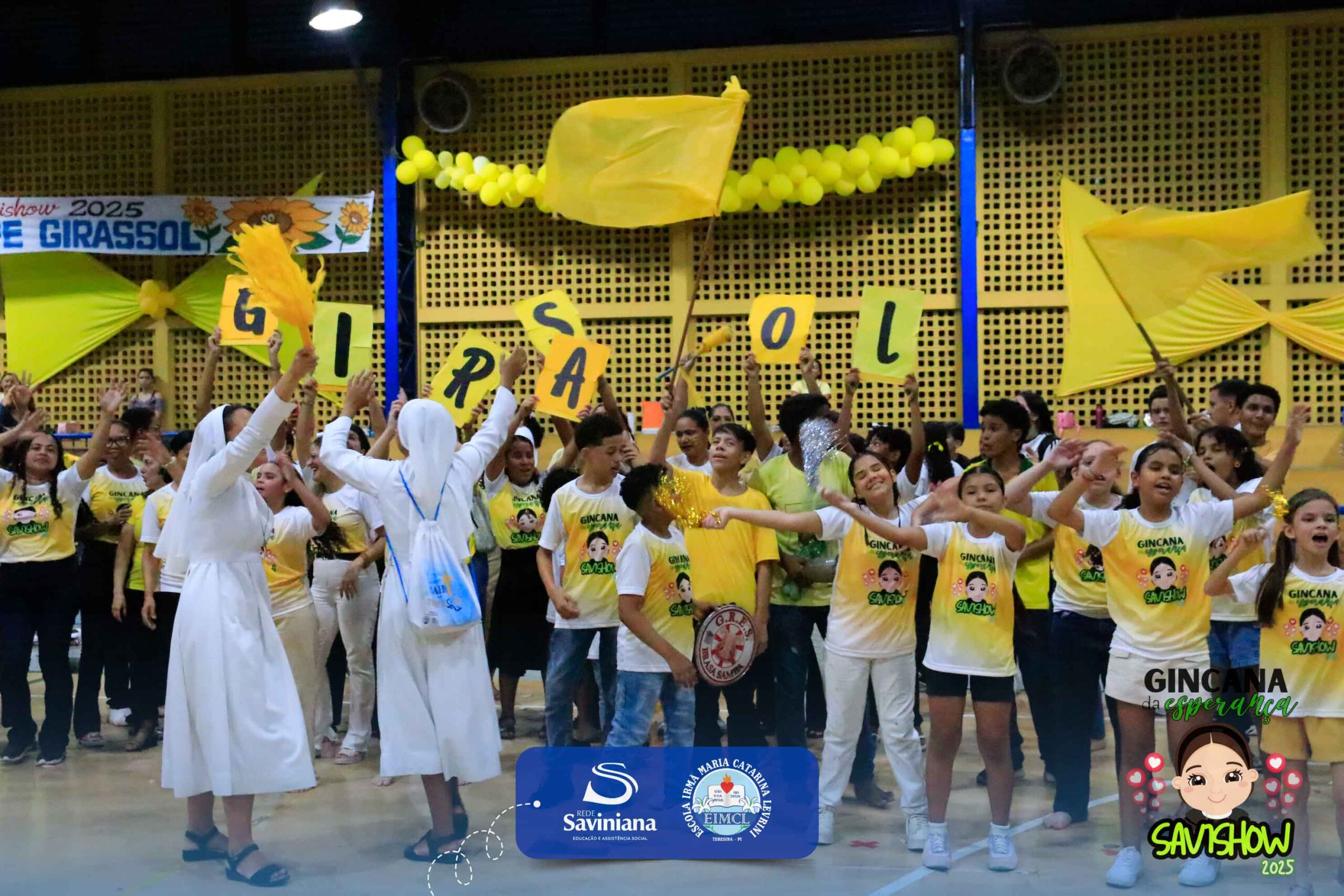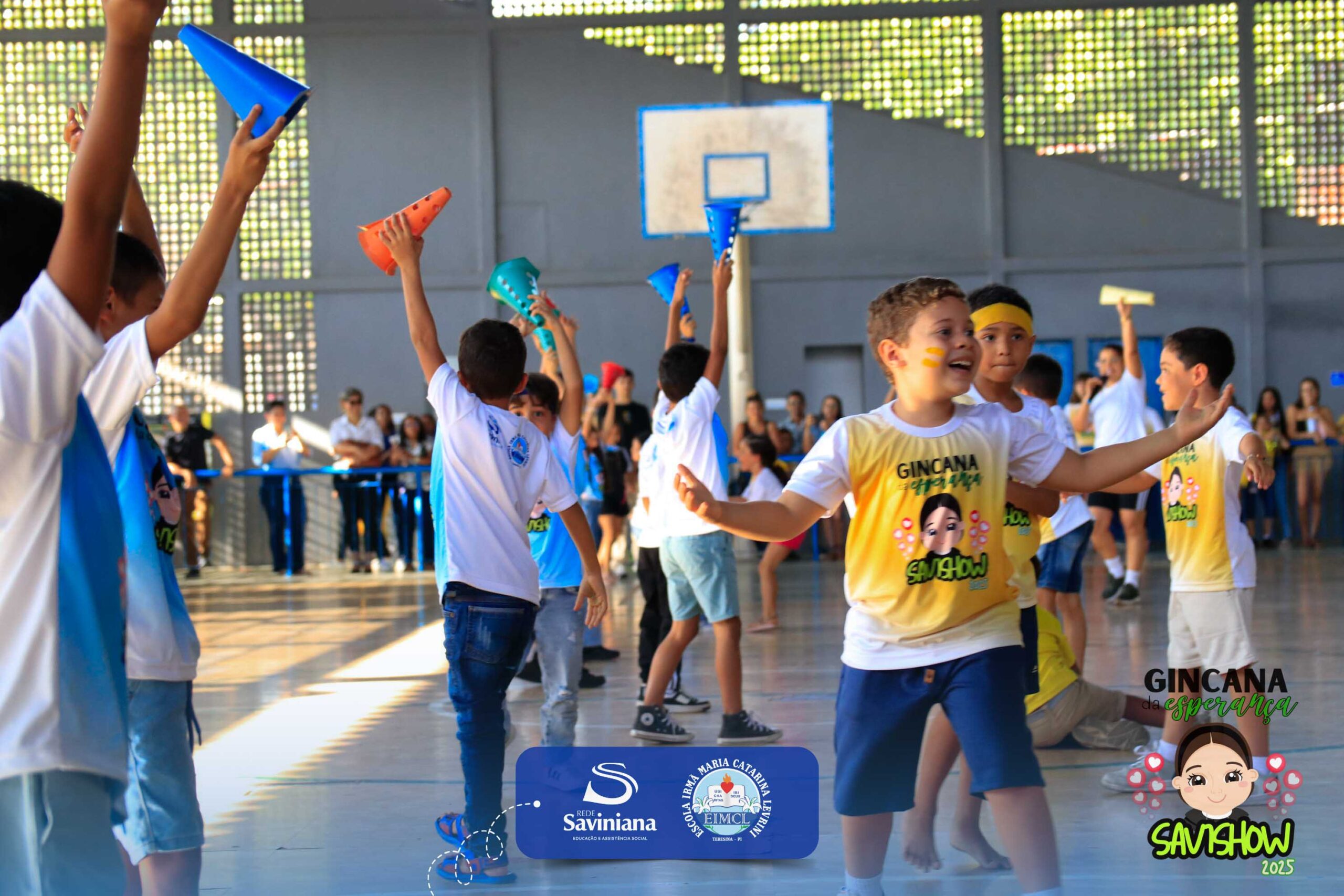 A Gincana da Esperança mobilizou toda a comunidade escolar com arrecadação de alimentos, provas, brincadeiras, quiz e muita animação dos alunos do 1º ao 9º ano. 🙌 Divididos entre a Equipe Girassol e a Equipe Espírito de Família, nossos Saviestudantes deram um show de talento, cooperação e amizade no Ginásio Jacira Sousa.