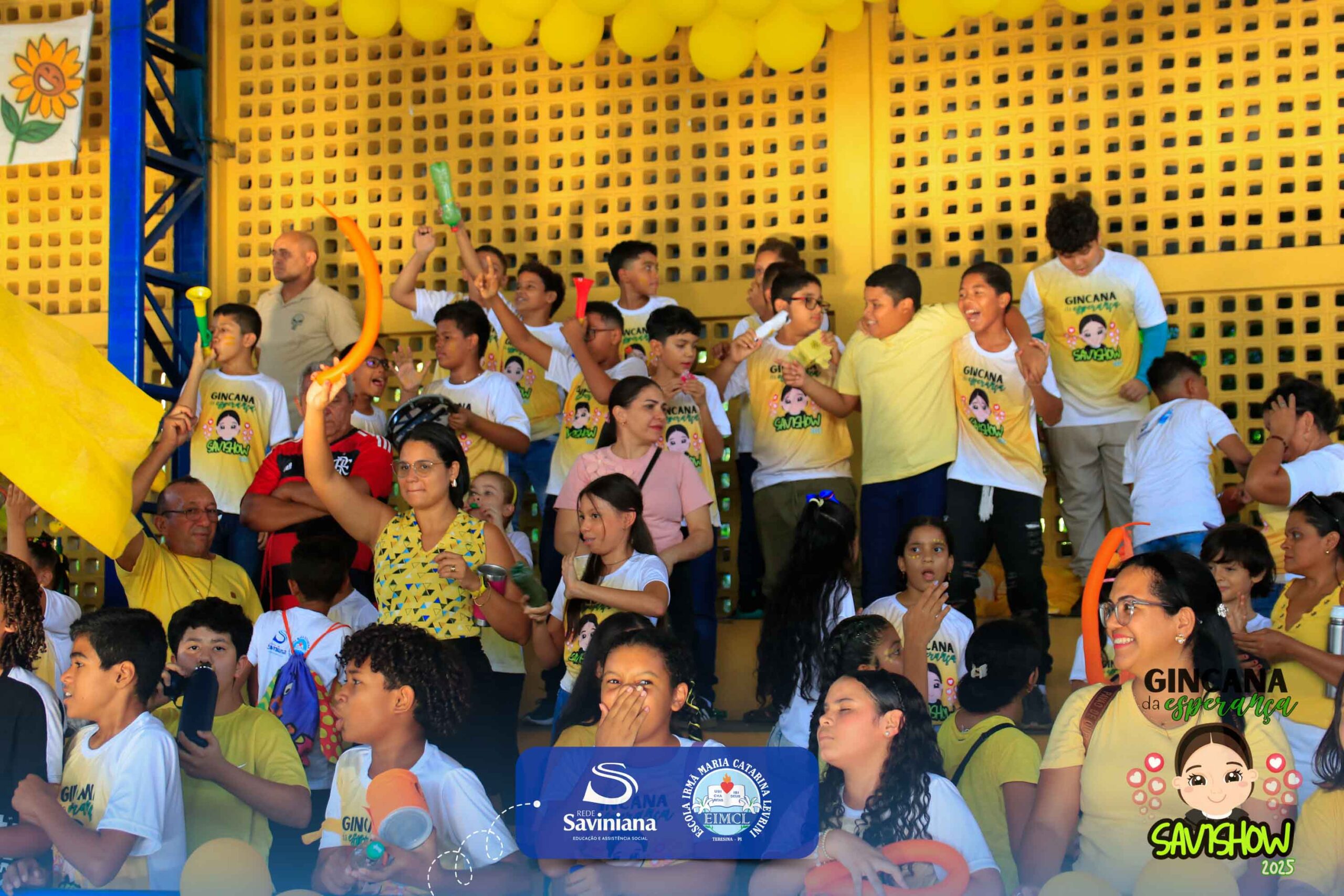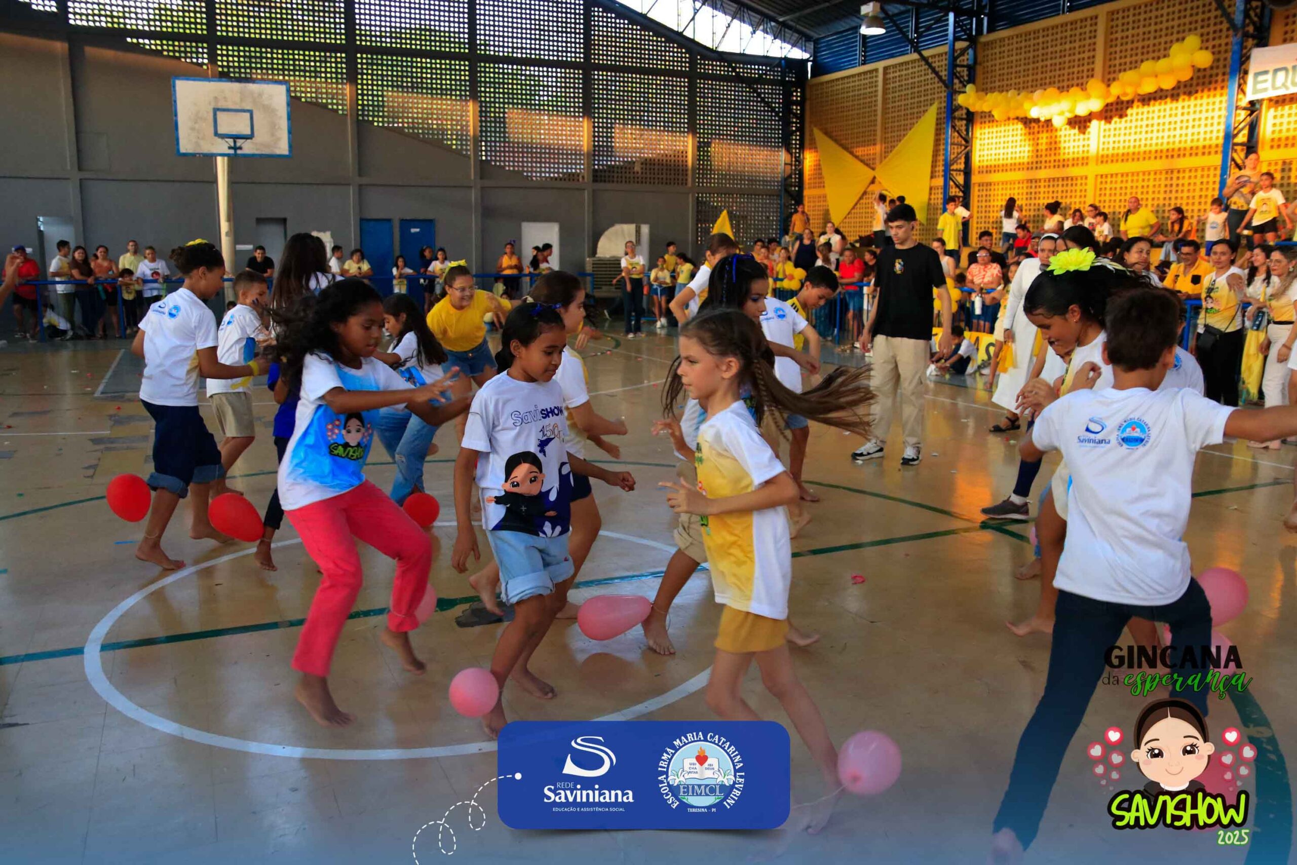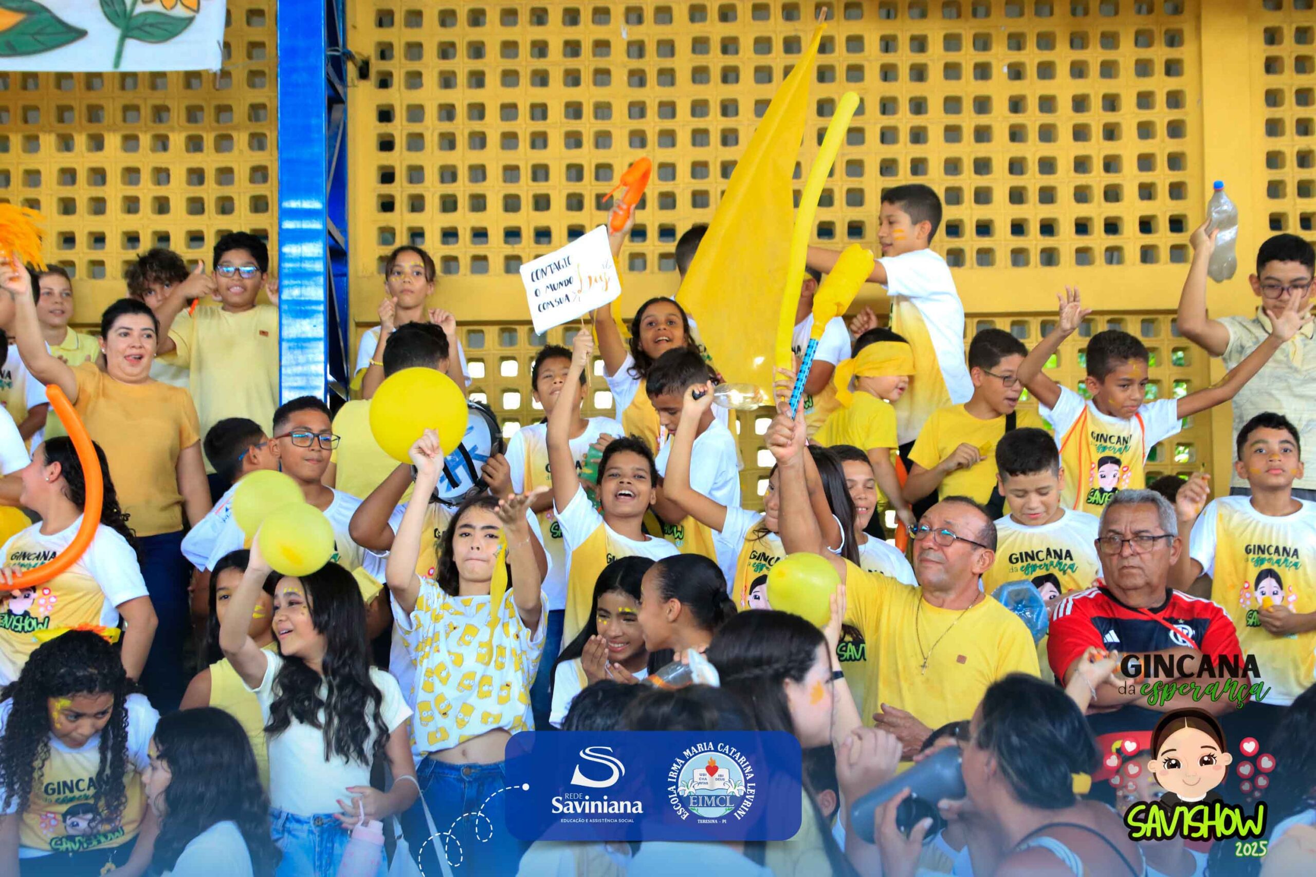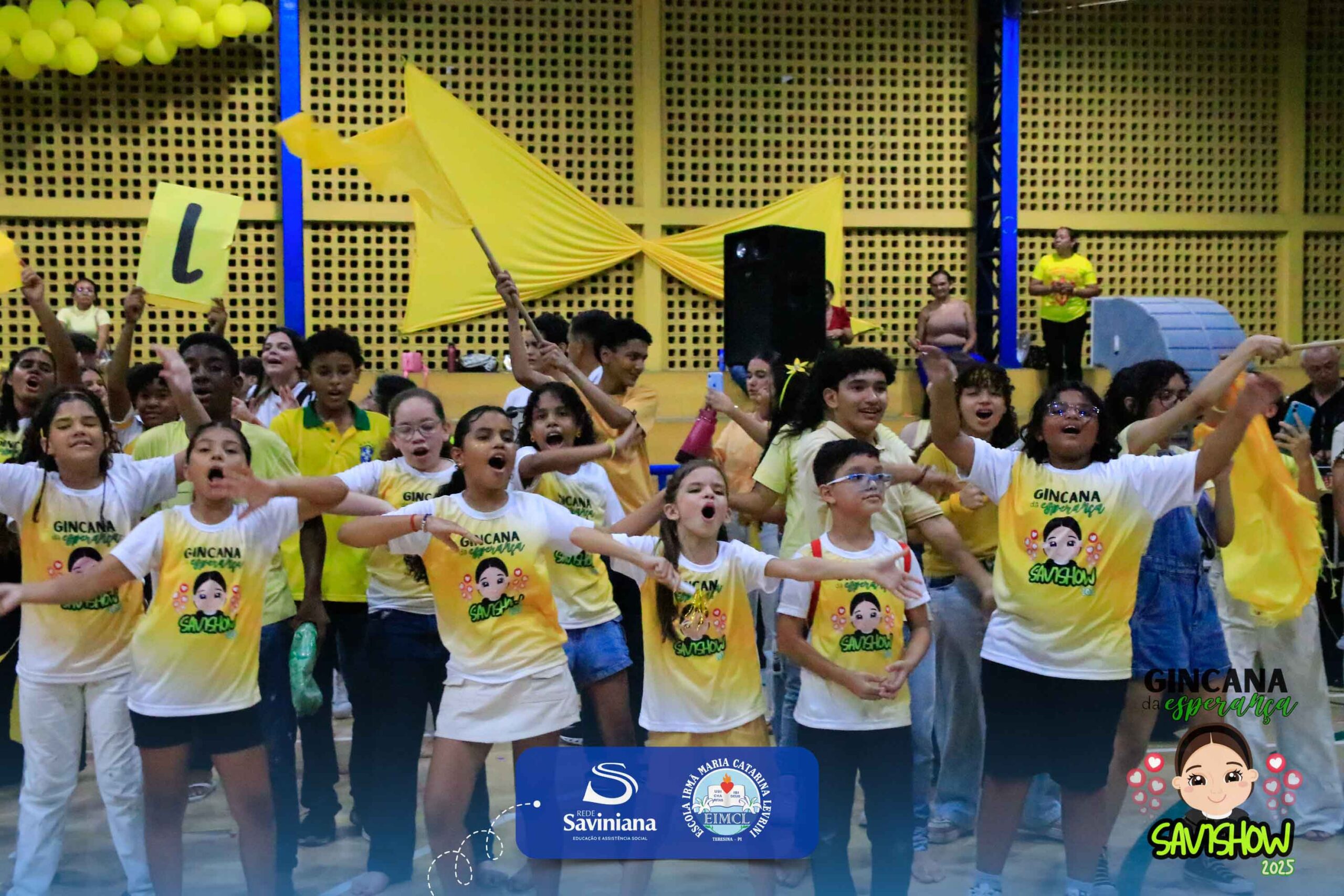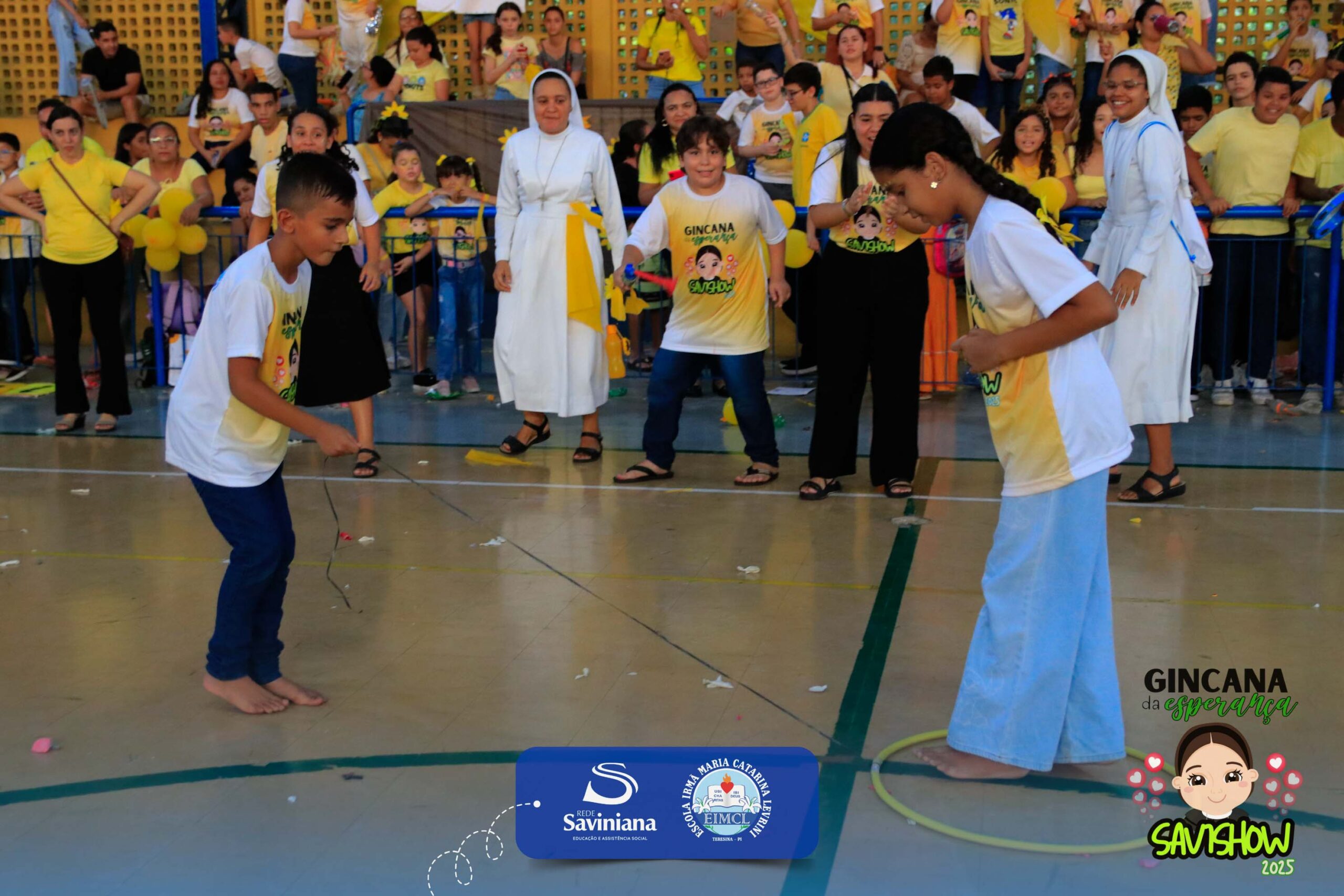 A Gincana da Esperança mobilizou toda a comunidade escolar com arrecadação de alimentos, provas, brincadeiras, quiz e muita animação dos alunos do 1º ao 9º ano. 🙌 Divididos entre a Equipe Girassol e a Equipe Espírito de Família, nossos Saviestudantes deram um show de talento, cooperação e amizade no Ginásio Jacira Sousa.