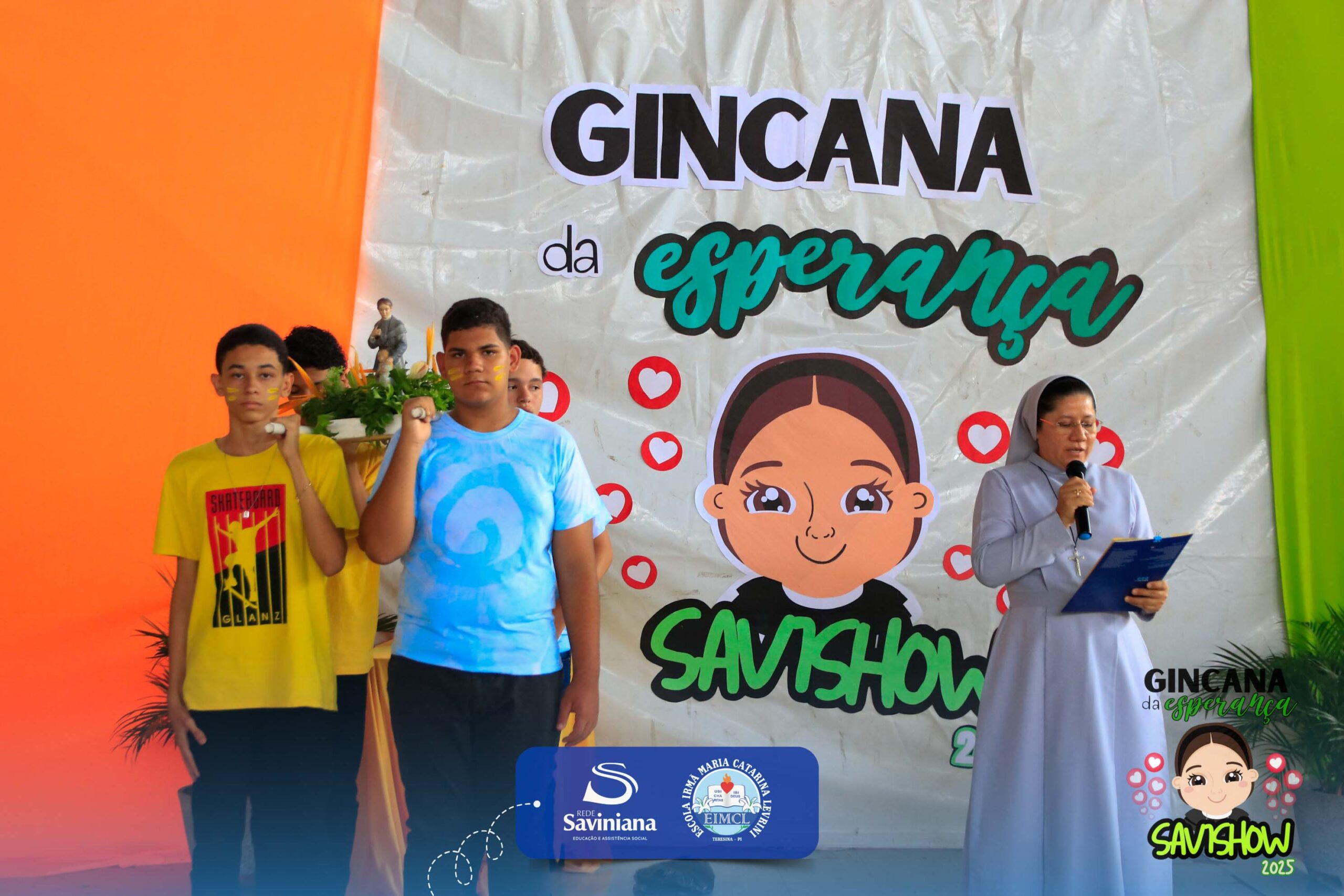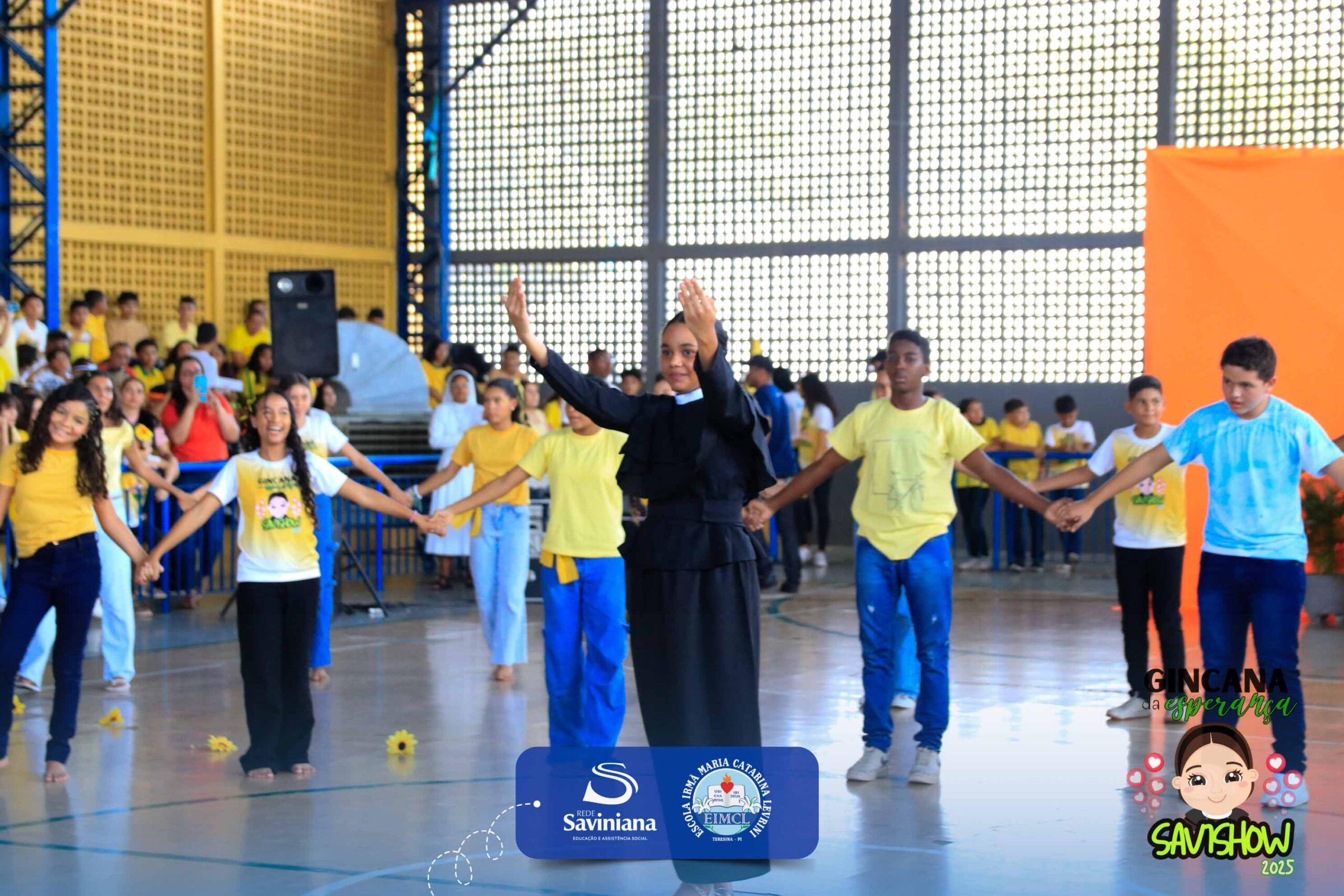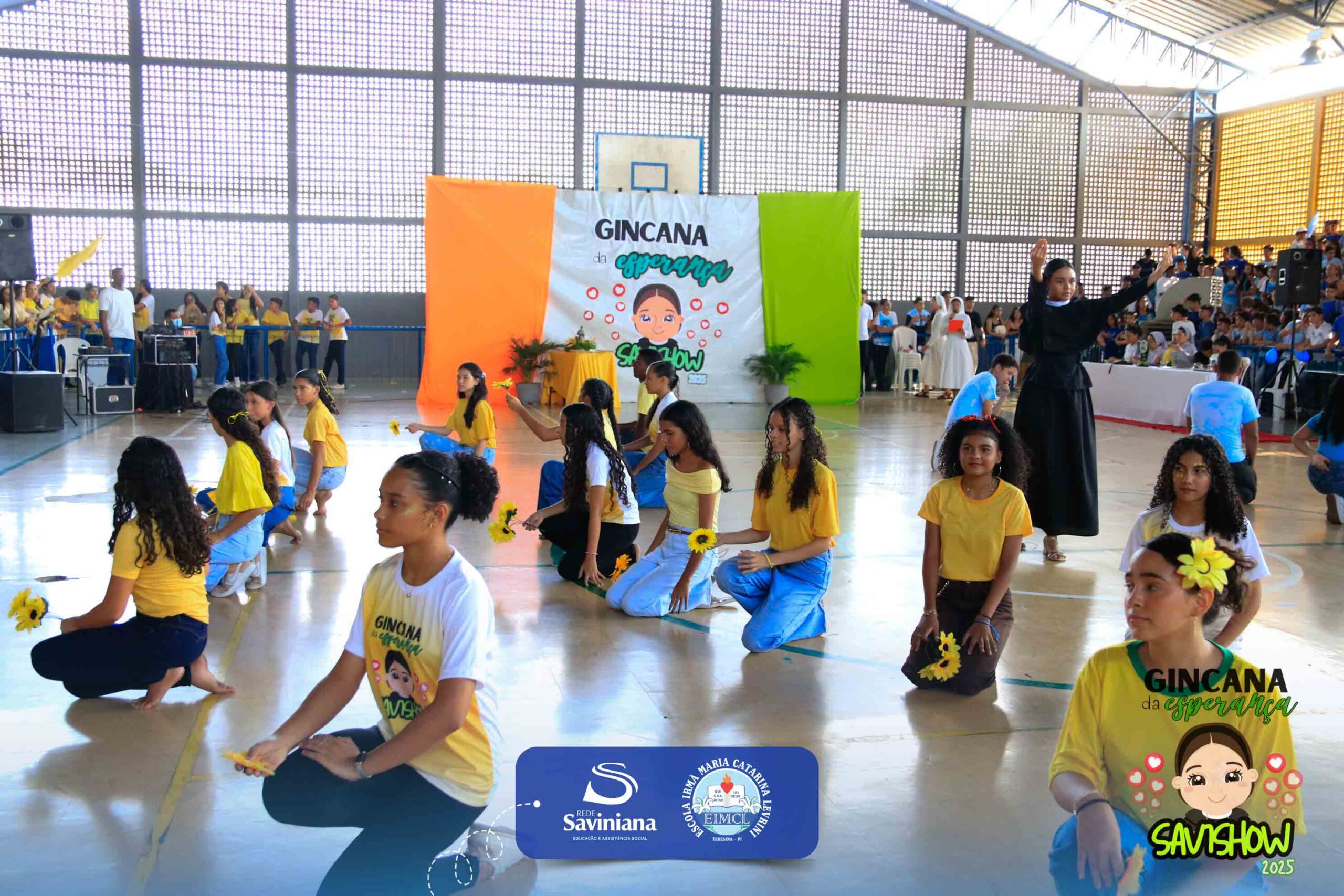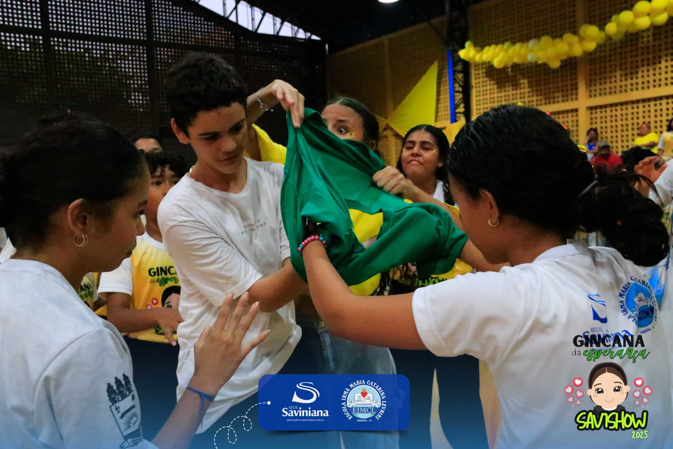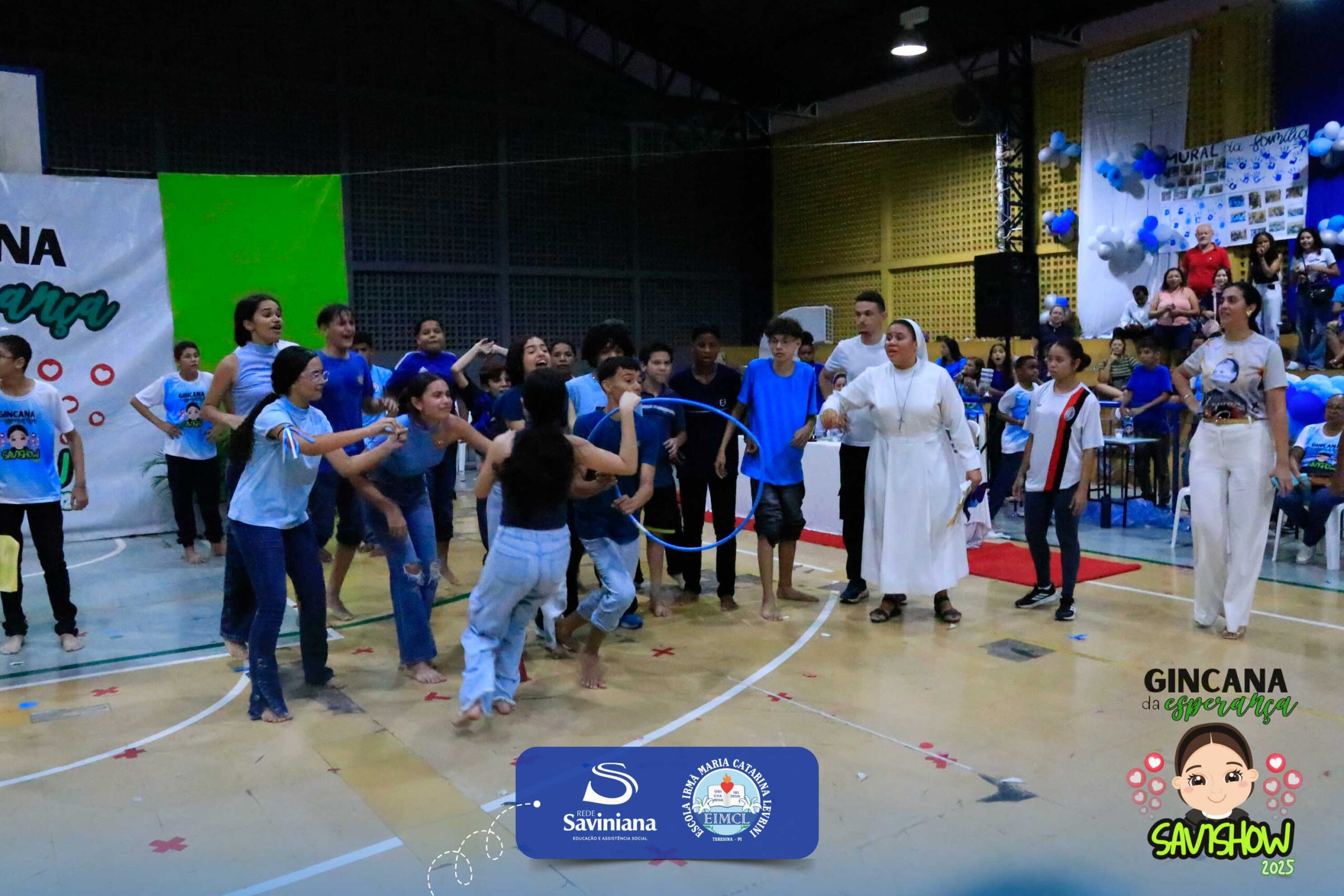 A Gincana da Esperança mobilizou toda a comunidade escolar com arrecadação de alimentos, provas, brincadeiras, quiz e muita animação dos alunos do 1º ao 9º ano. 🙌 Divididos entre a Equipe Girassol e a Equipe Espírito de Família, nossos Saviestudantes deram um show de talento, cooperação e amizade no Ginásio Jacira Sousa.