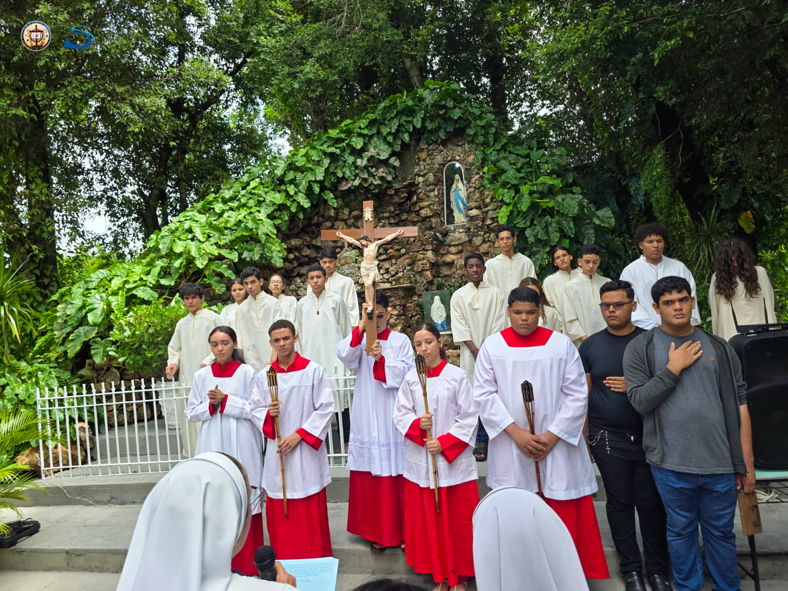 Na Sexta-feira da Paixão, a programação iniciou com a Via Sacra, realizada na Gruta do Memorare e aberta à comunidade. À tarde, os jovens participaram da Celebração da Paixão do Senhor e da adoração da cruz. À noite, o Terço do Perdão conduziu momentos de reconciliação, com encenações feitas por jovens aspirantes.