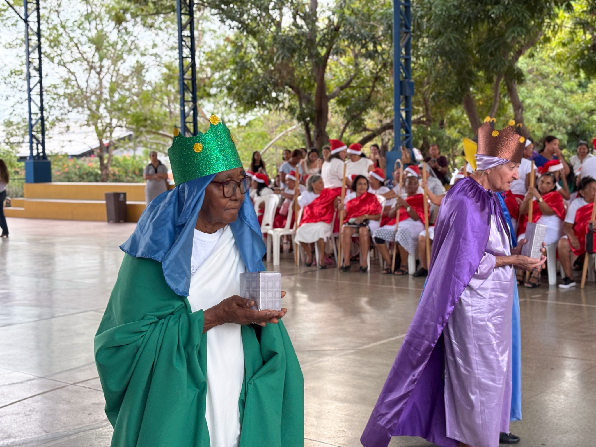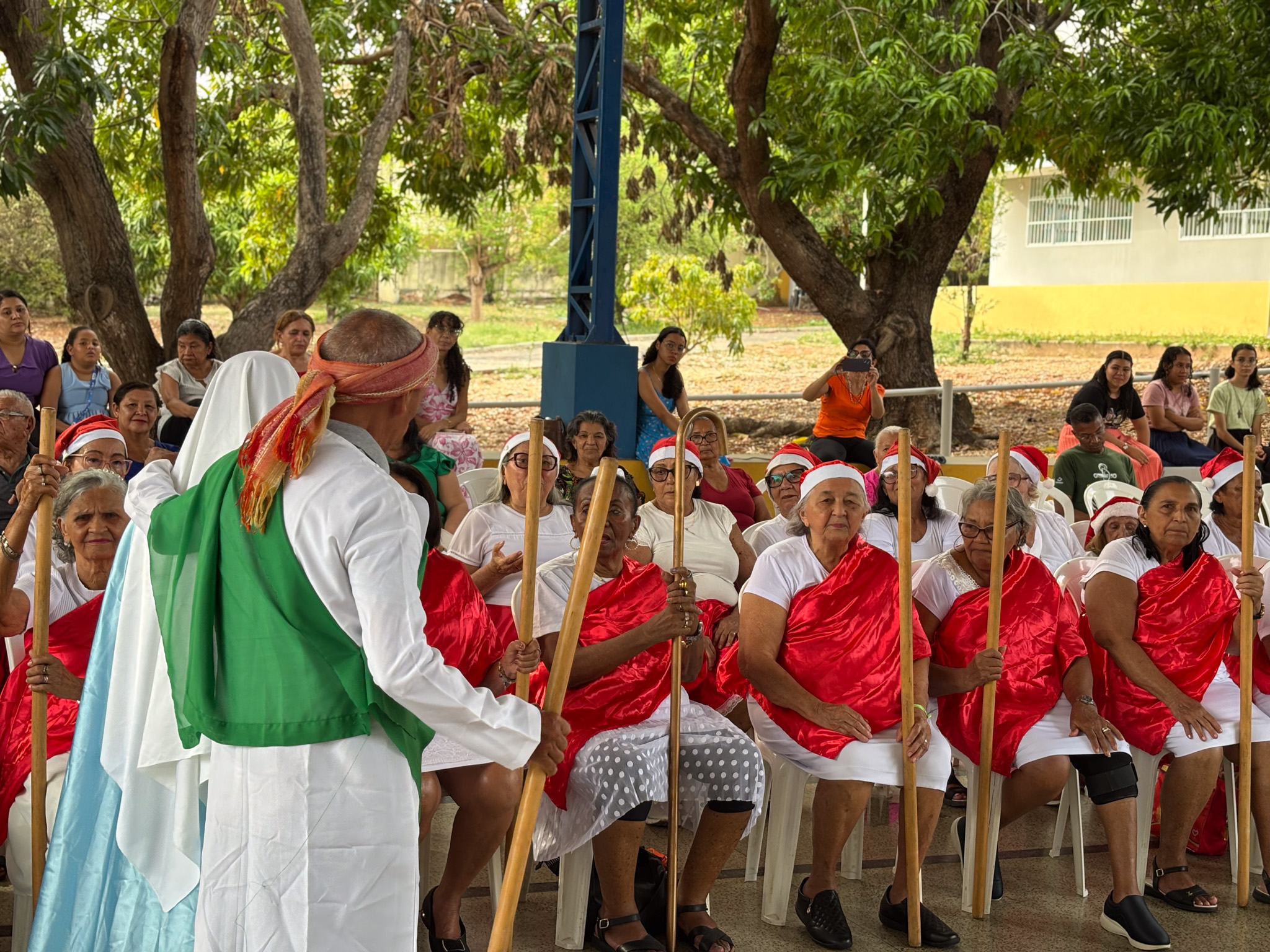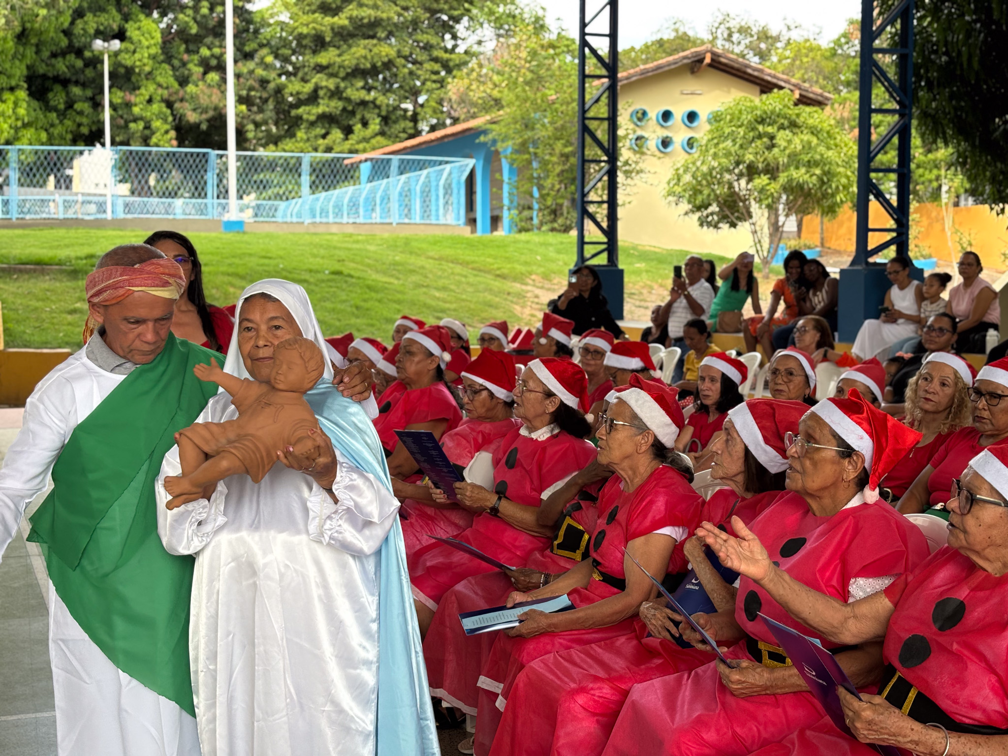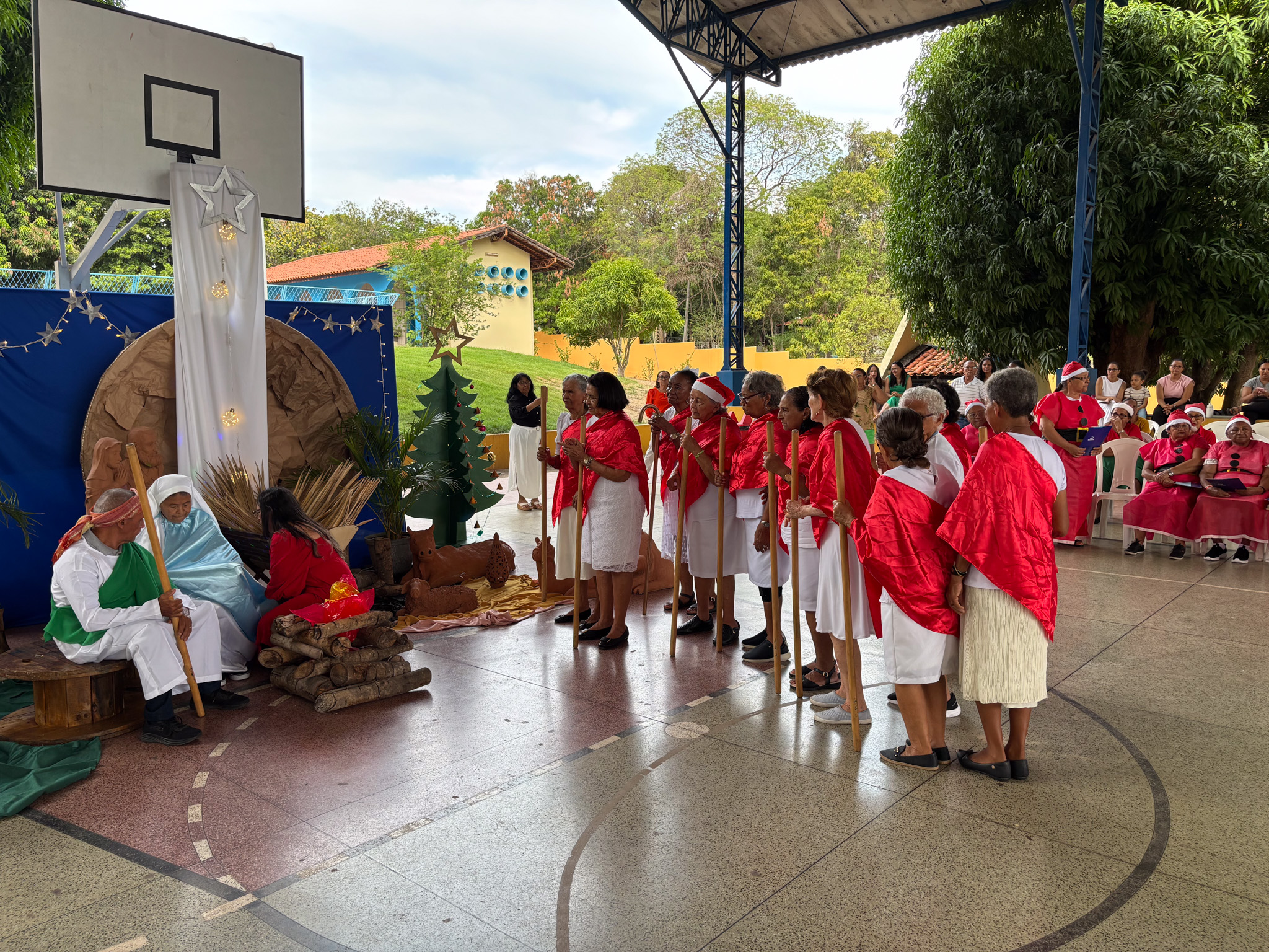 A programação foi marcada por muita emoção e significado, destacando-se a encenação do nascimento do Menino Jesus, apresentada pelos próprios idosos, que transmitiram, com sensibilidade e dedicação, a mensagem de amor, esperança e união que o Natal representa. O evento também contou com apresentações de coral e dança, encantando a todos os presentes e demonstrando o talento, a alegria e o envolvimento dos participantes ao longo do ano.