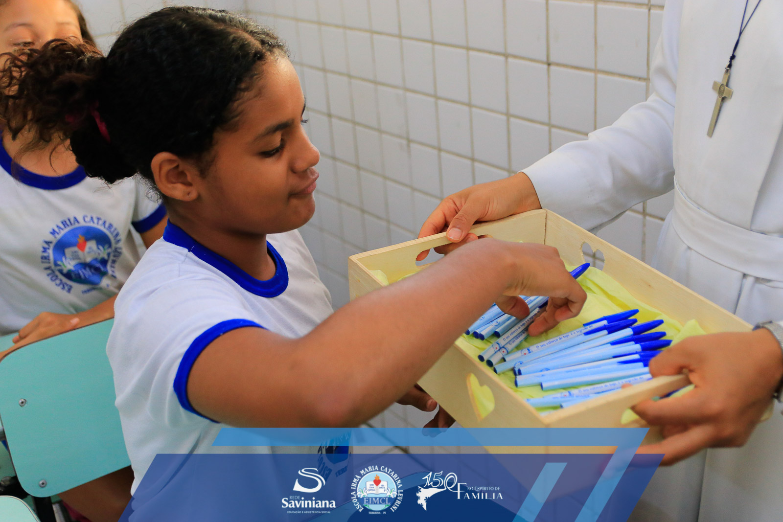 Para simbolizar essa transição especial, cada aluno recebeu uma caneta, marcando o momento em que deixam o lápis para adotar a escrita com caneta, como um marco de crescimento e amadurecimento.